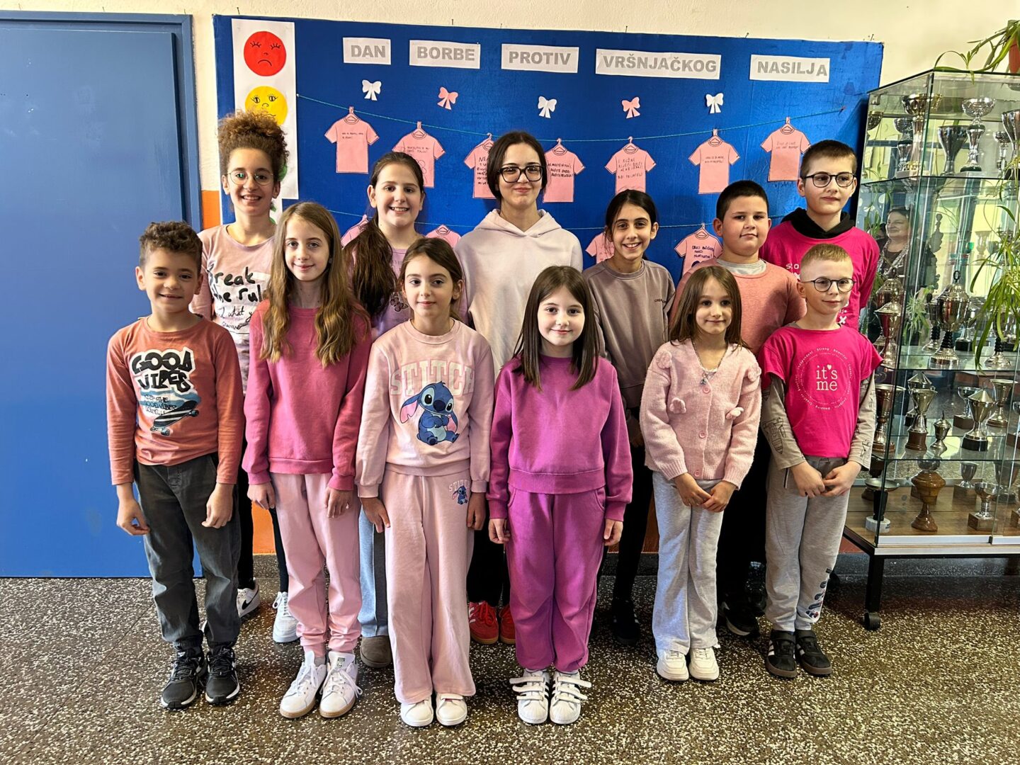Danas smo u našoj školi s ponosom obilježili Dan ružičastih majica. Dan ružičastih majica simbol je borbe protiv vršnjačkog nasilja i podsjetnik koliko su poštovanje, razumijevanje i prihvaćanje važni u svakodnevnom životu. Kroz razgovor i zajedničke aktivnosti učili smo o nenasilju – o tome kako se problemi mogu rješavati mirnim putem, lijepom riječju, strpljenjem i međusobnim uvažavanjem. Učenici su sudjelovali u kreativnoj radionici tijekom koje smo crtali i ukrašavali ružičaste majice te na njih pisali poruke podrške, prijateljstva i tolerancije.